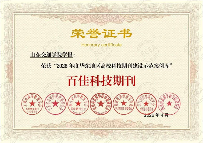 4月23日至26日,“人工智能时代高校学术期刊高质量发展”研讨会暨2026年华东编协学术年会在上饶市召开,会上发布了“2026年度华东地区高校科技期刊建设示范案例库”遴选结果。我校《山东交通学院学报》入选“2026年度华东地区高校科技期刊建设示范案例库·百佳科技期刊”。